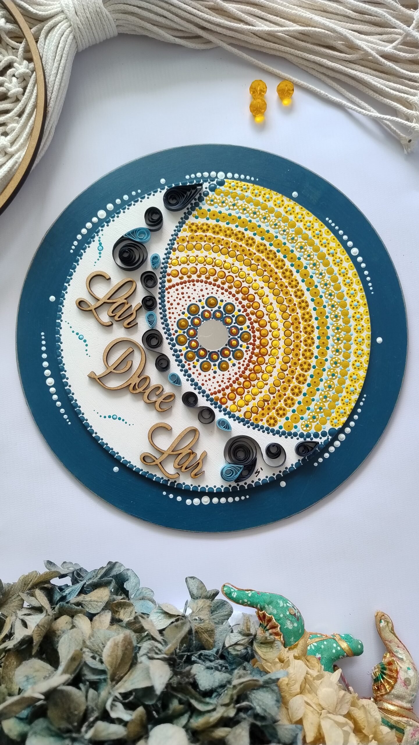 Peças exclusivas, confeccionadas intuitivamente e disponíveis na loja virtual. Cada mandala é única, feita manualmente com técnicas como pontilhismo, quilling, pastilhas, biscuit e diversos outros materiais.