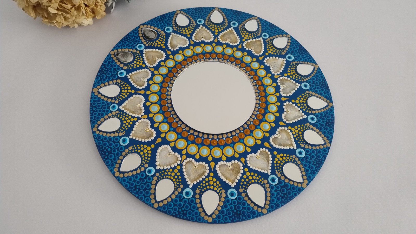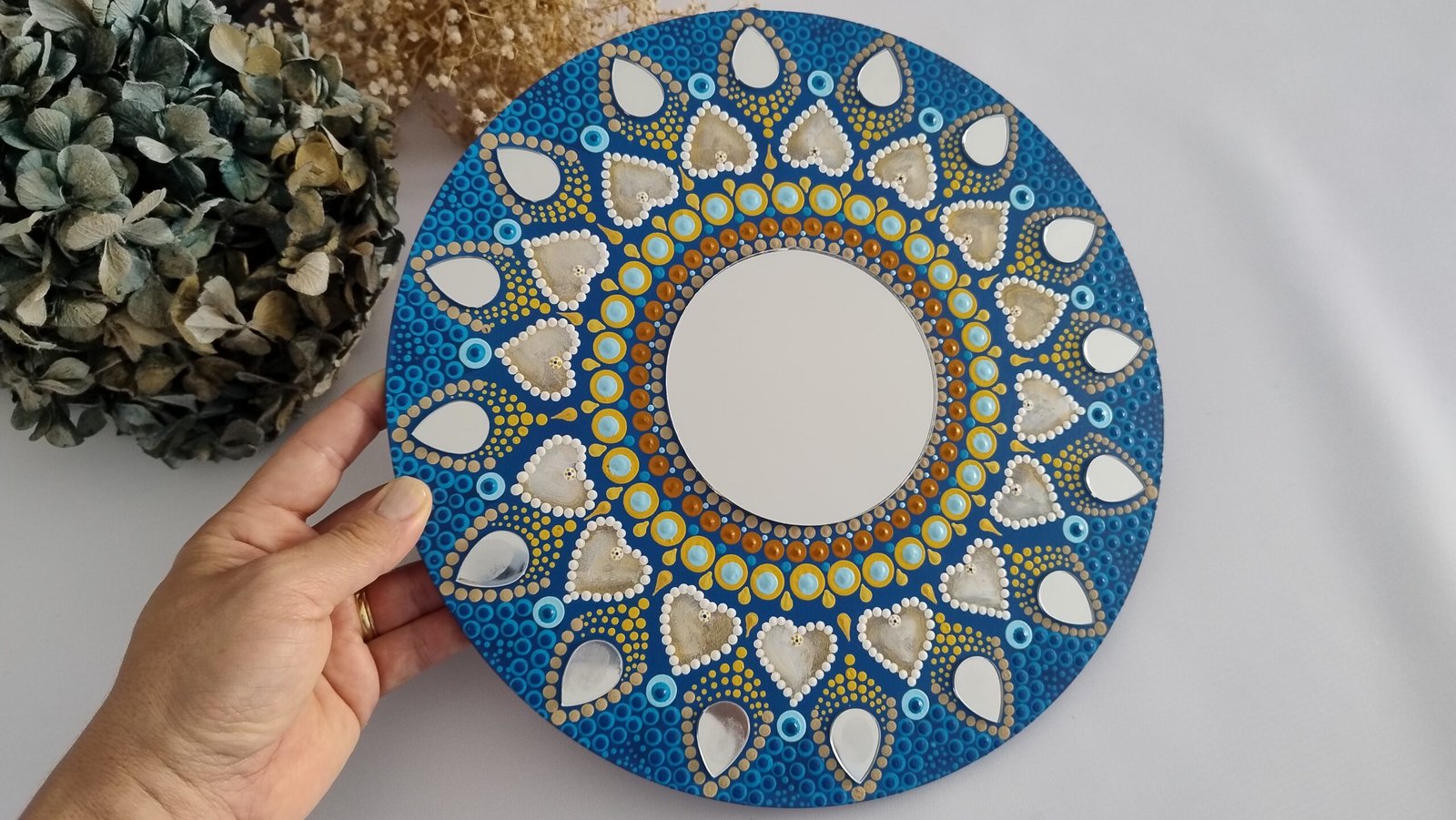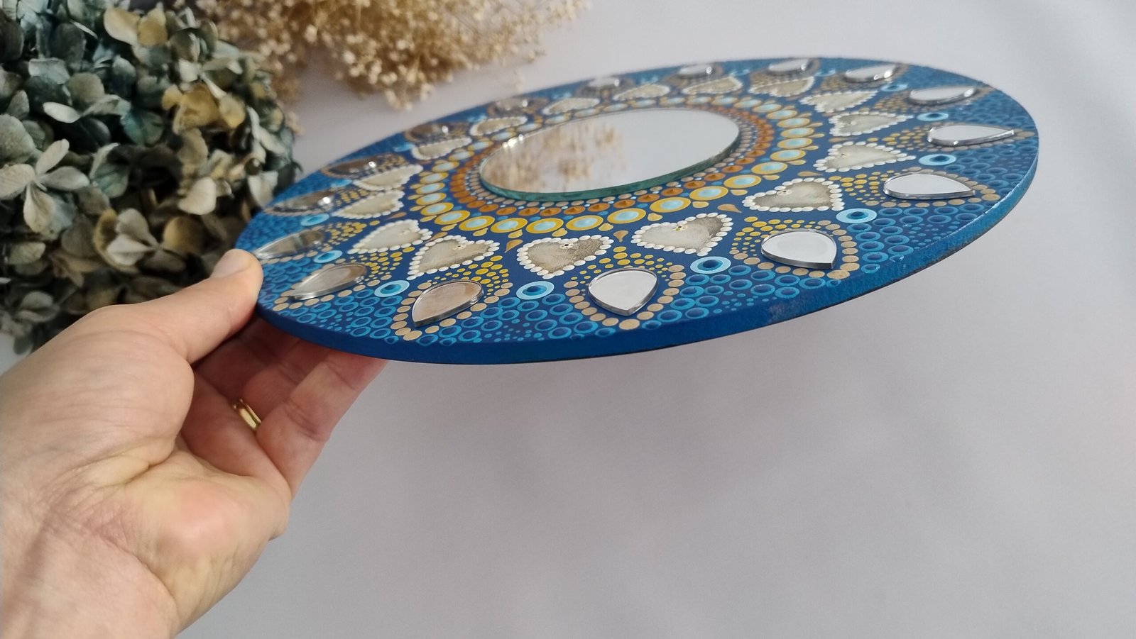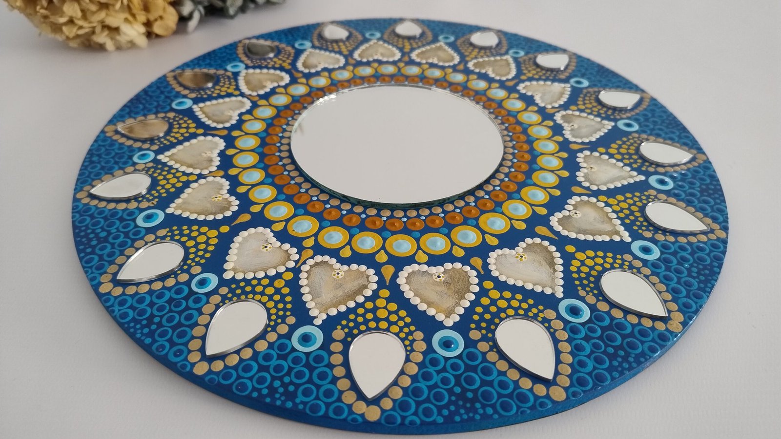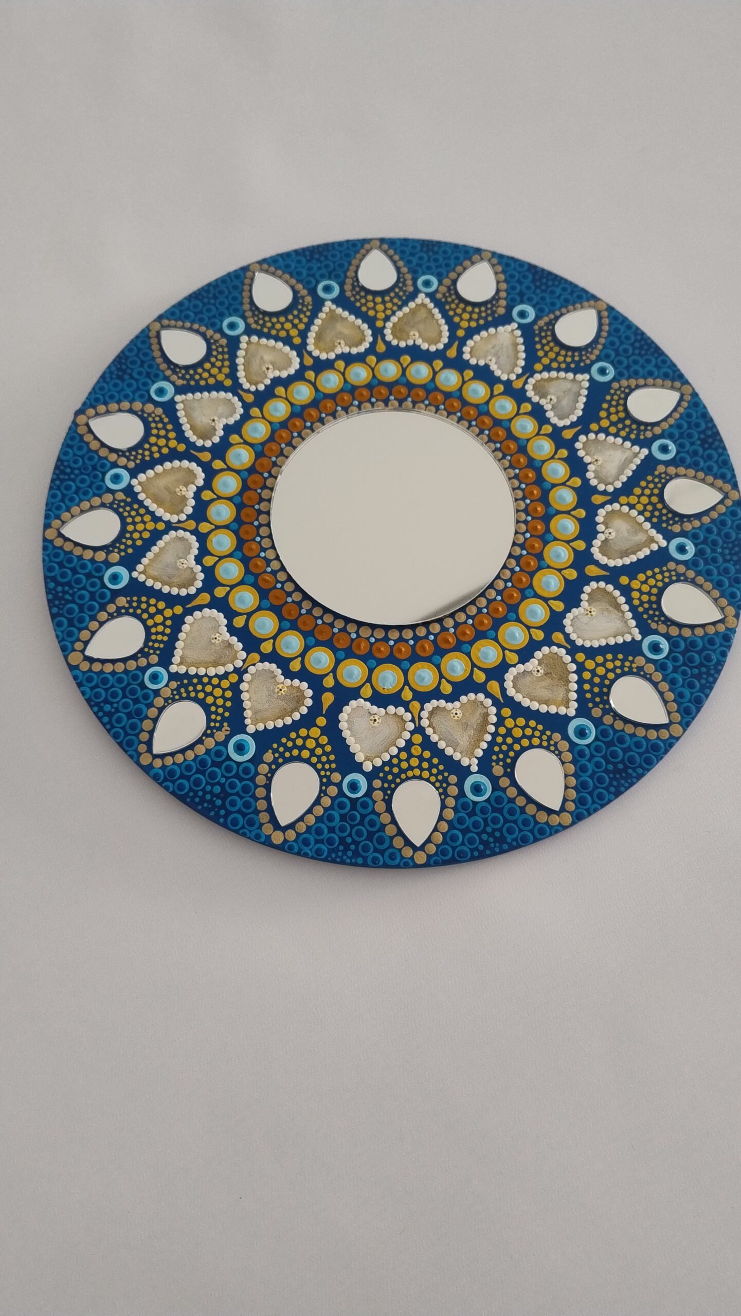 A Mandala Reflexo nasceu do processo de criação, pausa e restauração — assim como a vida, que muitas vezes nos pede para rever, ressignificar e florescer de novo. Criada na técnica de pontilhismo e cuidadosamente finalizada com espelhos, ela carrega em sua essência o brilho da superação e da transformação. Feita em MDF de 6mm, Diâmetro: 28,7 cm, Técnica de pontilhismo com milhares de pontos aplicados à mão, Espelhos cuidadosamente distribuídos, refletindo luz e trazendo clareza ao ambiente.